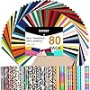 CAREGY HTV Heat Transfer Vinyl Bundle: 80 Pack 12" x 10" Iron on Vinyl for T-Shirt, 53 Assorted Colors for All Cutter Machine or Heat Press Machine
