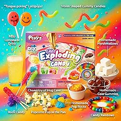 EXPLOSIVE YUMMYNESS - Inspiring young kids to learn has never been easier or more delicious with the best candy making kit for kids! Make loads of exploding crystal rock candy, jelly candies, chocolates, lollipops that pops, cracks, fizzles, and EXPLODES in your mouth (yes, its safe!) and much more through these kids science experiments. EASY TO FOLLOW - The fact-filled colorful lab guide in our DIY kids chemistry set is full of pictures and information presented in a children-friendly way. It's like an easy bake oven for kids, making it one of the best kids science toys for boys and crafts for girls ages 8-12. EXCITING EDUCATION - Combine STEM concepts to unleash a massive amount of learning potential in children and teenagers with our science kit for kids 8-12 and up. Best Christmas and birthday gift for boys, girls, & teens who love an unforgettable chemistry kit packed with amazing science stuff to create dreamy delicious snacks. LOADED WITH VALUE - Filled with over 29 experiments, a 72 page activities and lab guide, and over 29 tools & ingredients, our Edible Exploding Candy making kit offers only the best science projects for kids ages 8-12. The ideal "my first science kit" with a real science lab feel. STEM for kids has never been this tasty! (Some additional common household supplies may be necessary for some experiments) TRUST OUR PLAYZ PROMISE - Do your research! You know the quality you will get when purchasing a Playz educational science kit. If you are unhappy with your purchase, contact us anytime for a refund.