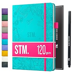 【SCRIBBLES THAT MATTER JOURNALING NOTEBOOKS】: Create stunning spreads on buttery-smooth, luxuriously-thick paper with a crisp 5mm dot grid in our dotted journal - Iconic Version. Ideal for bullet journaling, writing, and artistic expression. 【ULTRA THICK ZERO BLEED PAPER】: Enjoy zero bleed-through, ghosting, and feathering on 160gsm (ultra-thick) paper for heavy marker and paint art work whilst 120gsm (thick) paper is perfect for pens, fountain pens, highlighters etc. 【PRE-DESIGNED FOR EFFORTLESS PLANNING】: Includes pre-printed key, 3 index pages, 2 pen-test spreads, numbered pages, STM pioneered page centre and edge guides—so you can skip the setup and jump right into planning, tracking, and creating spreads. 【BUILT TO LAST FEATURES】: Elastic band closure, flexible pen loop, rugged vegan leather hard cover journals, rounded edges, back cover pocket, 2 unique-colored pretty bookmarks, and true lay flat binding. Libretas de apuntes writing journal. 【DAILY JOURNAL FOR WOMEN AND MEN】: Whether it's for bullet journaling, gratitude journaling, manifestation, fitness, professional notebooks for work, business, or any planner for life, our dot grid notebook offers you the freedom to do it your way