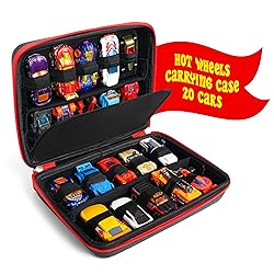 ULTIMATE HOT WHEELS AND MATCHBOX CAR STORAGE: This hard travel case for toys securely holds up to 20 cars, making it the perfect matchbox car case or hot wheels carrying case for enthusiasts. CONVENIENT AND PORTABLE DESIGN: Designed as a matchbox car carrier, this compact and lightweight hot wheels car carrying case is ideal for travel and on-the-go fun. VERSATILE ORGANIZATION: Each slot in this match box car storage containers features elastic straps, accommodating all standard Hot Wheels and Matchbox cars, ensuring this toy car carrier keeps your collection organized. STYLISH AND DURABLE CONSTRUCTION: Featuring a sleek black exterior with a smooth red zipper, this hotwheels case combines style with robust construction, making it a reliable hot wheel carrying case for any enthusiast. PERFECT GIFT FOR TOY CAR LOVERS: Ideal for birthdays, holidays, or any special occasion, this matchbox cars case is a fantastic gift for boys and girls who cherish their toy car collections.