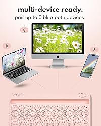 Super Easy to Connect and Ready for Any Task: With 78-keys, 13 shortcut keys, and LED indicators, the ipad bluetooth keyboard allows you to easily complete any task at hand while saving space. Ultra Portable and Rechargeable: Small enough to tuck away in your bag and with A 280 mAh rechargeable battery, the iphone keyboard is also a great travel keyboard solution for on-the-go situations. Setup Your Office Virtually Anywhere: Easily dock your smartphone or tablet directly on the portable bluetooth keyboard for iphone through the built in 10.5" slot. Sync and Switch Between 3 Devices: Enjoy seamless multi-device use and switch between 3 devices simutaneously with our multi device keyboard. Brighten Up Your Workspace: Our iPad wireless keyboard adds a touch of fun and personality to your desk, making work more enjoyable and vibrant.