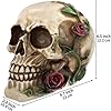 READAEER Human Skull with Rose Resin Statue Small Size Head Sculptures Skull Collectible Figurines