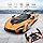 Doors open by manual Working LED headlights and taillights Made of ABS plasti Size: 13.4 x 6.1 x 3.4 inch Color available in orange Full functions - Forward, reverse, stop, turn left & right Remote range up to 98 feet Speed 5 mph Batteries NOT included - Requires 5AA for the toy car and 2AA for the remote