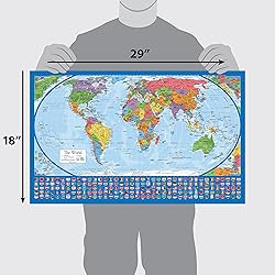 - 2 Pack - Laminated World Map Poster & USA Map Set - Equal Earth world map design shows continents at true relative size - US Map 18” x 29”