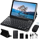Tableta Android de 10 pulgadas FACETEL con teclado 2 en 1, 4GB RAM, 64GB ROM TF 128 GB, 8000mAh, FHD, Cámara dual, WiFi, Bluetooth, con ratón, gris