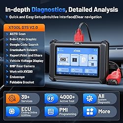 - XTOOL D7S obd2 scanner that does everything with throttle relearn is an Upgraded Version of the XTOOL D7 automotive obd2 scanner diagnostic tool. XTOOL D7S professional OBD2 Scanner Diagnostic Tool bidirectional for Cars and Light-Duty Trucks. 2026 XTOOL D7S is a state-of-the-art xtool obd2 bidirectional diagnostic abs bleeding scan tools for professionals, workshops, garages, and DIYers enthusiasts. As the upgraded version of the D7 XTOOL Scanner, D7S XTOOL OBD-ii Scanner Diagnostic Tool features a new user interface, a larger battery, and 2GB of RAM with 64GB of storage, making it 5X faster than its predecessor. XTOOL d7s Automotive car scanner diagnostic tool for all cars/car diagnostic scanner for all cars offers comprehensive all-systems diagnostics, 39+ services, Online ECU c0ding, PMI, FCA Autoauth for Chrysler, CAN FD for GM obd automotive scan tool with live data& DoIP for BMW full diagnostic , and bidirectional controls .XTOOL D7S Full System Diagnostic Tool, includies Check Engine, Transmission, ABS, Airbags, Fuel System, Battery, TPMS, Brake System, Steering, Climate Control, Throttle, Suspension, Lights. You must have check engine light on OBD2 scanner bidirectional and transmission vehicle obd scanner diagnostic tools for BMW , ABS OBD2 scanner tool that does everything.XTOOL D7S Car Diagnostic Scanner for all vehicles has Improved User Interface: Enjoy a new and intuitive UI interface for easier navigation and a more efficient diagnostic experience. With its expanded features, enhanced vehicle coverage, and upgraded battery life, the 2026 XTOOL D7S obd ii scanner diagnostic tool para autos is a cost-effective tool that makes this already cost-effective tool worth every penny even more! XTOOL D7S automotive vehicle diagnostic scanner with ecu c0ding offers 39+ advanced functions, including Oil Light Reset, EPB, SAS, D*PF, BMS Reset, Battery Relearn, Battery Reset, Battery Registration Tool for BMW, Throttle, TPMS Reset, ABS Bleeding, Injector C0ding, Gearbox Match, Suspension, Seat Match, Headlight, A/F Reset, Stop/Start Reset, SRS, Language Change, Tire Size Reset, Crank Sensor Relearn (Crankshaft Relearn), Power Balance, Coolant Bleeding, Clutch Adaption, E*GR Relearn, FRM Reset, V*GT Relearn, HV Battery, A/C Relearn, Rain/Light Sensor, and Control Unit Reset. XTOOL D7S crankshaft position sensor relearn tool/crank sensor relearn for bmw crank relearn scan tool for all vehicles with fca autoauth for all automotive systems is designed to meet the diagnostic needs of a wide range of vehicles.With advanced features like live data graphing and data playback, the XTOOL D7S car computer diagnostic reader & scanner for all cars/car diagnostic tool for all cars with live data ensures precise fault detection and troubleshooting. XTOOL d7s escaner automotriz profesional en español supports over 10,000 vehicles worldwide andcovering 10,000+ vehicles globally, for BMW, for Benz, for VW, for Audi, for Skoda, for Toyota, for Lexus, for Scion, for Mazda, for Ford, for Lincoln, for Chevrolet, for Dodge, for GM, for Honda, for Hyundai, for Jeep, for Mini, for Nissan, for Porsche, for Subaru, Code reader for cars and trucks (12V), including light-duty Trucks, Mini Vans, SUVs, Pickups, support for Ford F-Series, For Chevrolet Silverado, For Toyota RAV4, For Honda CR-V, For Dodge Ram, For GMC Sierra, For Toyota Camry, For Nissan Rogue, For Honda Civic, For Toyota Corolla, For Jeep Grand Cherokee, For Chevrolet Equinox, For Ford Explorer, For Toyota Tacoma, For Honda Accord, For Nissan Sentra, For Jeep Wrangler, For Ford Escape, For Hyundai Elantra, For Chevrolet Malibu, etc.XTOOL D7S escaner automotriz profesional en español enhanced Auto Scan function detects VIN automatically. Enjoy 3 years of software updates, ensuring the XTOOL D7S diagnostic scanner for all vehicles remains up-to-date. XTOOL D7S bi directional epb service throttle body relearn scan too for all vehicles upgraded Diagnostic Report 2.0 enhances reporting efficiency, allowing for customized layouts and easy sharing. Whether for professional or personal use, the XTOOL d7s auto scanner & obd2 diagnostic tool is the ultimate solution for your automotive diagnostic needs!