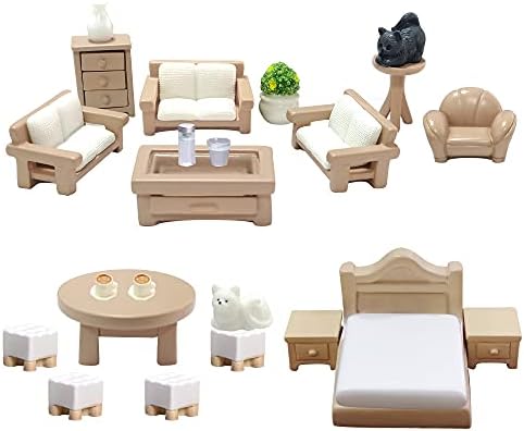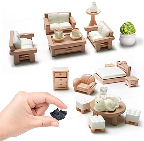 • ✿ El paquete incluye: este juego de muebles de minicasa de muñecas incluye 23 piezas de accesorios para casas de muñecas para comedor, dormitorio y sala de estar.