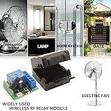 【Great design】433Mhz RF wireless remote control switch.Stable and reliable performance with high reception sensitivity (> 97dBm). Radio frequency signal transmission.Strong signal can pass walls, floors, doors,board and so on.It can be controlled within 50 meters distance in open area. You can remotely operate every machine connect with the relay receiver through the remote control. 【Easy to use】Extremely easy to set up and reset. There are 4 operating mode(momentary/toggle/latched/delay mode) can be chosen.You can easily set up by yourself depends on your needs. The operating mode of the product is adjustable.This item has already been set up in latched mode. 【More Flexibility】This receiver adopts 10A relay, which can load high-power electrical appliances to ensure long-term stability control.There are 3 terminals(normally open, common, normally closed) for the wireless relay. 【Operational safety】The voltage of this receiver is 12V. The operation is very safe.The terminal is a screw buckle, convenient and safe. 【Multiplayer control】One receiver can store about 20 transmitters. So you can share the transmitters to family/ friends.All of you can remote control the device connect with the relay receiver. And one transmitter can control multiple receivers too. 【Secure System】The code of the chip is EV1527 learning code which is the most popular technology that making the remote control system more security. Other transmitters cannot control your receiver unless them have been set up with your receivers. 【Quality Assurance】High-quality relay that can be used over 100,000 times.Let this product is more long-lasting and stable to use. The high-power terminal can withstand a current of 15A, so that this product can have a good effect even when the current is unstable. 【Strong Signal Reception】There is an antenna on the receiver,so that you can stretch it by yourself to get a stronger signal reception. 【High Quality Remote Control】The remote control has a long service life. There is a screw port on the back of the transmitter, and the battery can be replaced after disassembly. The battery is CR2016.It is so easy to purchase. 【Wide Application】Products can be used in homes, farms, factories, offices, laboratories, supermarkets and so on.You can remotely operate every device connect with the relay receiver through the remote control. such as, electric lock, Electromagnetic door,fan, lamp, lighting, ventilation device,water pump, signal transmission and DIY remote control switch.