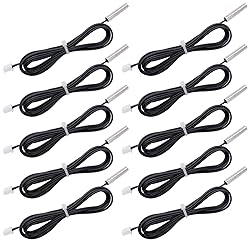 AITRIP 10PCS NTC 10K 3950 Ohm Waterproof Temperature Sensor Probe Stainless Digital Thermal Sensor Probe Cable Length 1M