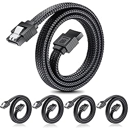 SATA III Cable:With Newest version of SATA 3.0 data cable, you can easily applied it in connecting motherboards and host controllers to internal Serial SATA hard drives and DVD drives,which can quickly add expanded storage for your computer.SATA III backwards compatible with SATA I and SATA II. 6Gbps Data Transfer: Finish 1GB file transfer in 5 seconds with 6Gbps High-speed data transfer speed,fully compliant with the SATA III specification, 2x faster than SATA II. Cost-effectively : Comes in 5 Packs once of a cost effective way to provide replacement or spare for different SATA systems or for RAID configuration or a last minute installation or to fix troublesome connection problems. Universal Compatibility: Widely Compatible with 2.5” SSDs, 3.5” HDDs, optical drives, RAID controllers, embedded computers and controllers. Support ALL popular SATA equipped device in market with SATA HDD, SSD, CD Driver, CD Writer. If not sure the compatibility,just contact us via email for quick problems solving. Easy to Use:Plug in and Play, no any software installation required.Compatible with your Internal Serial ATA hard drives, Hard disk, recorders, CD-ROM etc PLEASE NOTE: Data Cable ONLY,NOT for power supply. When applied it to use,please power it or provide sufficient energy for it separately. Focus on Quality: Locking latch on each end of this cable to guarantee securer connections for fast and reliable file transfer. Protective nylon braided cable is rugged enough to rupture or tangle or knots no matter how you fold it.