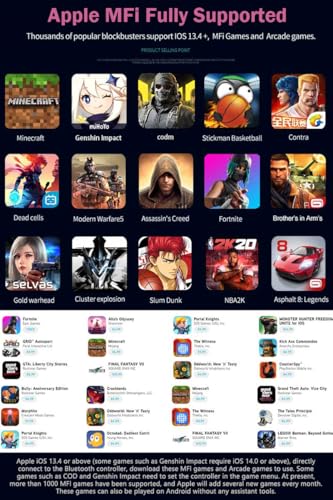 - Support Various Games: This mobile game controller for iOS/Android support most of the controller games in the App Store - Call of Duty/ COD, Apex Legends Mobile, Diablo Immortal, Modern Combat 5, Asphalt 8/9 and more; Also support cloud game and Delta Emulator, for more games not listed above, you can consult us (Note: PUBG is not supported)