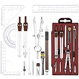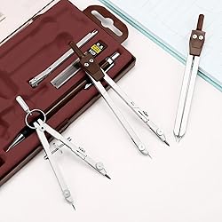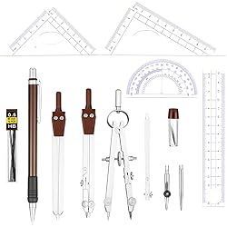 Sufficient quantity: you will get a package including 3 graphic compasses, 1 ruling pen, 1 dull locating pin, 1 extension bar safe pin, 2 pencil refills, 1 mechanical pencil, 2 triangular rulers, 1 piece 6-inch ruler, 1 piece 3.5-inch protractor, which are put in 1 shatterproof plastic box Quality tool sets: the compass kit set is made of zinc alloy steel which is sturdy, durable and easy to carry; The rulers and protractors tool set is made of PS material which is light-weight, clear and heavy-duty Practical geometric compass set: the rulers, triangles and protractors feature gradations for easy identification; The robust plastic case is to protect and store these tools in one place in a backpack or desk Extension beam design: there is an extension beam attached to the big compass for drawing large circles; You can draw a larger circle without lots of measuring and connective dots Convenient to use: the circle and straight line drafting set is an instrumental helper involving many measurement tools that are needed in drafting and drawing, by architects, engineers, draftsmen, builders, roofers, teachers and students
