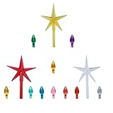 Package Includes 105 pieces of 10 assorted colors medium twist plastic replacement bulbs and 3 color stars which are white yellow red, this kit is most often used on ceramic trees measuring 11 inches to 16 inches in height Ceramic tree replacement bulbs dimensions: stem size 2/5" length, 3/16" diameter, bulb size 2/5'' width, 11/16'' heigh Ceramic Christmas tree star topper dimensions: stem size 1-3/8'' length, 3/16" diameter, little topstar 2-1/4'' height, 2-1/6'' width Ceramic Christmas tree light kit made of high-quality plastic, Clear plastic lites can be used to decorate many crafts, such as ceramic trees, porcelain trees, styrofoam, novelty lamps Vintage Ceramic tree accessories perfect for replacing lost tree bulbs and topper stars in your cherished ceramic trees Note: Please measure the size of your Ceramic Tree carefully before purchase