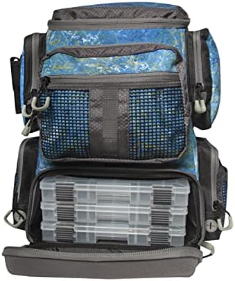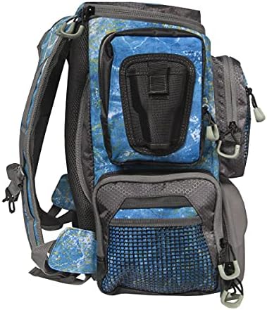 - SHORELINE CAMOUFLAGE: The tackle box backpack is made with Mossy Oak Shoreline pattern for an attractive blue camo design. Reinforced stitching, quality zippers, and components finish off the tackle bag for the best angling accessory on the water.