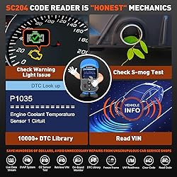 【Affordable Price】+【Powerful Functions】 Recommended by well-known auto mechanic Scotty Kilmer on Youtube many times. CGSULIT SC204 scan tool with full OBDII/EOBD functions you need to perform smog check and solve engine issues - ①Read Codes ②Clear Codes ③Liva Data ④View Freeze Frame ⑤I/M Readiness ⑥DTC Library ⑦O2 Monitor Test ⑧Retrieve VIN ⑨On-board Monitor Test ⑩EVAP System Test 【Professional Check Engine Light Code Reader with Reset】+【Must-have Helper for Every Car Owner】 SC204 auto diagnostic code reader is able to deeply and comprehensively diagnose engine system, locate the root causes of warning light, and determine if you can repair it yourself to avoid blind and expensive repair fees. After problem fixing, helps you to clear fault codes and t-urn off check engine light (CEL). Undoubtedly a great gift for Mother's Day, Father's Day 【One-click I/M Readiness】+【10000+ Built-in DTCs Lookup Library】 SC204 code reader car diagnostic tool with reset lets you quickly make sure whether your lovely car is ready to pass the annual smog test with one click. Furthermore, CGSULIT scan tool is equipped with 10000+ DTCs database, which gives you a complete and clear fault explanation without google, saving you time maximum 【Vehicle Monitoring】+【Read/Record/Playback Live Data】 CGSULIT obd2 scanner car code reader can rapidly retrieve vehicle info, display real-time data such as engine coolant temp, RPM, speed... in text or graphical formats, diagnose which O2 sensor is bad, etc., makes you easily master vehicle condition. Most importantly, it can record and playback data for more effective tracking and thorough problem resolution 【Stronger Compatibility】+【10 Languages】 SC204 code scanner for vehicles works on most American cars from 1996, European from 2000, and Asian from 2008, supports all OBD2 & EOBD protocols: KWP2000, ISO9141, J1850 VPW, J1850 PWM, CAN. Additionally, this engine analyzer diagnostic tool supports English, Spanish, French, German, Italian, Portuguese, Swedish, Hungarian, Russian and Dutch, eliminating language barriers 【Plug & Play】+【Lifetime F-r-e-e Update】 SC204 check engine diagnostic tool is powered directly by the car, no b-attery/app download required, more stability and accuracy than bluetooth obd2 scanner. Menu-driven design makes it easy to use even for beginners. Lifetime f-r-e-e updates to get the latest vehicle coverage, features upgrade and bug fixes. Truly a one-time purchase for lifetime f-r-e-e use 【Buy Without Worry】+【Use With Confidence】 SC204 car code reader automotive diagnostic tool comes with a 30-day worry-free r-efund, 2-year w-arranty, and 5-year technical support. If you encounter any issues with functionality support or product defects, please feel f-r-e-e to c-ontact us anytime via Amazon Message or After-sales Email ( back of “User Manual” ) , we provide 7*24 hours online services 【Warm Tips】 SC204 check engine light reset tool is the latest version from factory, so just use it out of box without registration or update. There is a screen protector attached to the product screen, and if any scratches are found, just tear off the screen protector from top left or top right corner 【Please Note】 Dear customers, if you are unsatisfied with your SC204 auto code reader diagnostic scan tooL and would like to return it, please kindly mark it as “unsellable” to avoid it being resold to other customers, thanks much