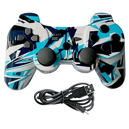 Linkshare wireless controller for ps3, double vibration bluetooth gamepad remote for playstation 3 with Charging Cord (camo blue)