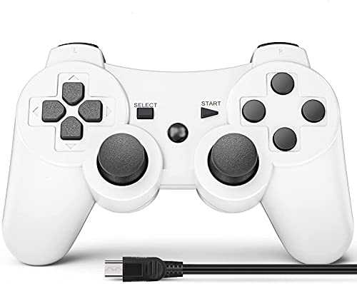 Linkshare wireless controller for ps3, double vibration bluetooth gamepad remote for playstation 3 with Charging Cord (White)