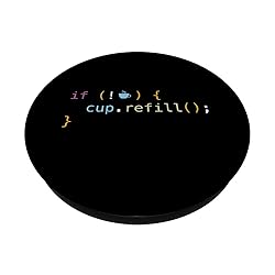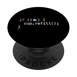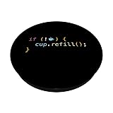 This funny java programming gear says "if not coffee, cup.refill" and is a must have for a programming student or software developer. Great for a software engineer or computer programmer. PopGrip with swappable top; switch out your PopTop for another design or remove it completely for wireless charging capabilities. (Not compatible with Apple MagSafe wireless charger or MagSafe wallet.) Expandable stand to watch videos, take group photos, FaceTime, and Skype handsfree. Advanced adhesive allows you to remove and reposition on most devices and cases. Note: Will not stick to some silicone, waterproof, or highly textured cases. Works best with smooth, hard plastic cases. Will adhere to iPhone 11, but not to the iPhone 11 Pro nor the iPhone 11 ProMax without a suitable case.