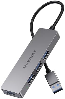 Hub USB 3.0 MAVINEX de aluminio, 4 puertos, adaptador USB ultradelgado SuperSpeed de 5 Gbps compatible con PC, MacBook, Surface Pro, XPS, unidad flash, disco duro portátil