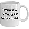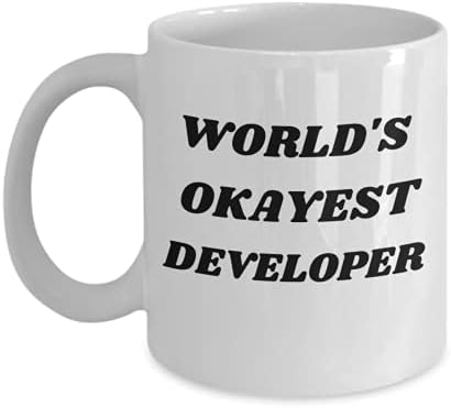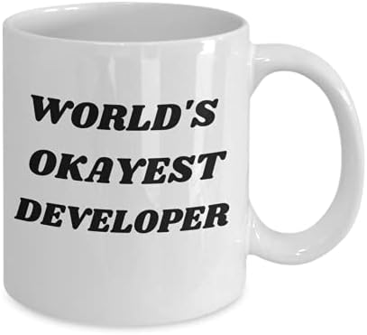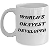Funny developer coffee mug, web developer tea cup, python developer Christmas and Valentines gift idea, world's okayest