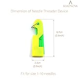 AUTOMATIC NEEDLE THREADER: Measures 67.5 x 22.5 x 6.7mm or 2.65 x 0.88 x 0.26 inch, this needle threading device is preferrable by people such as elderly, or those who have sight difficulty, hand problem and struggle to use small sewing machine needle threader. Random colors mix include green, yellow and red. HANDY NEEDLE THREADER: Made in good quality plastic, these automatic sewing machine needle threaders are lightweight. Durable and flexible to use, easy to go through most kinds of needle. Pack includes 5pcs needle threaders. EASY TO USE: Insert needle through the righthand side hole at the bottom. Press button on the side of the needle threader to protrude the hook and hitch the sewing thread on it. Release the button, pull the needle out and the thread is on the pinhole. WORK WELL FOR BOTH HAND AND MACHINE SEWING: These automatic needle threaders are perfect for threading needles having small needle eye, good for both hand and machine sewing projects. Our needle threader can help you easily do a number of different threads with a single project. PACKAGING: 5pcs needle threading device in random mix colors per bag.