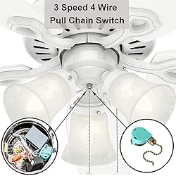 ZE-268S6 Ceiling Fan Switch Zing Ear 3 speed 4 wire pull chain switch replacment is designed with 4 wires rotary control and 3 speed models. Electrical Rating: 6A/125VAC,3A/250VAC. Zing Ear ZE-268S6 (Replaces ZE-208S6). Three speed control: OFF, Low, Medium, High(OFF,L-1,L-2-3,L-3). Use for Ceiling Fans, Wall Lamps, Cabinet Light, Appliances, Replacement Speed Control. Works well in Hunter, Casablanca, Harbor Breeze, Hampton Bay and so on. 100% Satisfaction guarantee,12-Month Warranty and 30 Days Money Back Guarantee. UL/CSA certification.