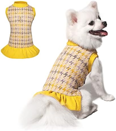 TONY HOBY Dog Dress, Dog Sweater Dress with Leash Hole, Dogs Princess Skirt for Small Medium Dogs (Yellow, XL)