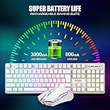 RedThunder K10 Wireless Gaming Keyboard and Mouse Combo, LED Backlit Rechargeable 3800mAh Battery, Mechanical Feel Anti-ghosting Keyboard + 7D 3200DPI Mice for PC Gamer (White)