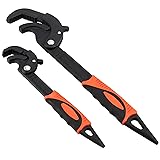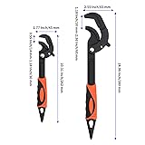RELIABLE MATERIAL - The multi-function adjustable wrench is forged from quality carbon steel, after high-frequency quenching treatment with high hardness, good toughness, and large torque, not easy to break and slip. EASY TO USE - Comes in 4 pieces 10 inch and 15 inch self-adjusting spanner wrench in total, 2 of each size, the opening is 0.6" to 1.2" and 1.2" to 2.4". Adopts self-locking function, which is convenient for one-handed operation, easy to connect and release. MULTIFUNCTION - The multi-function wrench with rubber handle is easy to grip and makes you feel comfortable, the longer handles give you a lot more leverage than other types of wrenches. Plus pointed tail bar end on the handle comes in very handy, can be used for prying or chiseling. PRACTICAL - With this power grip pipe wrench, you just need to adjust it then can quickly get nuts, pipes, screws loose without searching for the exact size of wrench needed. GREAT ADDITION TO ANY SET - The multi-function adjustable vise wrench with wide opening design, strong bite force, can easily achieve bite locking position, is not easy to slip, saving time and effort, convenient and fast.