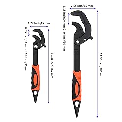 - SPECIFICATION: Material: Carbon Steel, TPR handle Size: 10 inch, 15 inch 10 inch opening size: 0.6 inch to 1.2 inch 15 inch opening size: 1.2 inch to 2.4 inch Color: Orange + Black Quantity: 2 x 10 inch Multi-Function Adjustable Wrench 2 x 15 inch Multi-Function Adjustable Wrench