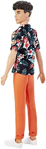 Barbie Fashionistas Ken Doll #184 con pelo castaño corto y camisa hawaiana, pantalones naranja y zapatos blancos de plataforma