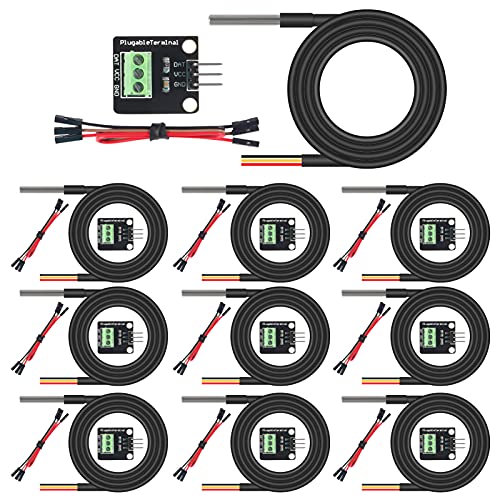AITRIP 10Pack DS18B20 Temperature Sensors Kit 1m/39.3" Cable Waterproof with Stainless Steel Probe for Arduino Raspberry Pi