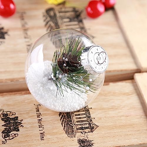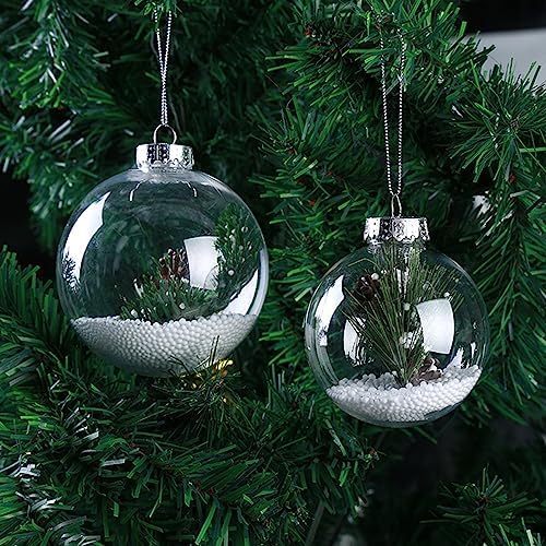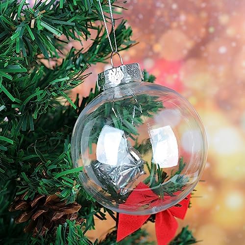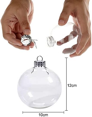DULRLLY 12 Pieces Transparent Christmas Balls, 100mm/4 in DIY Fillable Clear Plastic Ornament Balls with A Silver Rope and Removable Metal Cap for New Years Christmas Holiday Decorations