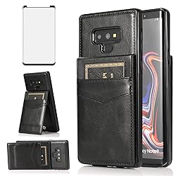 Phone Case for Samsung Galaxy Note 9 with Tempered Glass Screen Protector and Credit Card Holder Wallet Cover Stand Leather Cell Accessories Galaxies Note9 Gaxaly Glaxay Not S9 Cases Women Men Black