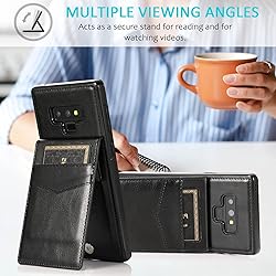 - Features: 1.【Compatible With】:Only compatible with Samsung Galaxy Note 9, NOT compatible with S9 or other devices. 2.【Gift】: We will send the phone case with 1 piece tempered glass screen protector [Case Friendly]. 3.【Card Holder】:4 cards can be placed inside the phone,and a frequently used can be 1 sheet placed outside. 4.【Vertical and Horizontal stand】:The Kickstand can be converted into a multi-angle comfortable view for reading, watching videos or facetime. 5.【Precise cutouts】 : Precise Cutouts for all Ports, Camera, Mic, Speaker. If there's any question, please feel free to contact us for best solution. We will reply you within 24 hours.