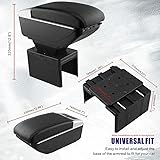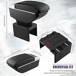 [ Adjustable & Liftable Pad ]The top pad can be raised and slided forward when you press the button in front of the armrest box, gives a better support to the arm.(installation screws in storage box) [Charging ]With 3 USB charging ports on the front and 4 USB ports on the rear for easy charging. [ Double layer Large Storage Space ]Double layer storage box can help you increase storage space , with retractable cup holder and shrinkable hidden ashtray, ideal for storing mobile phones, cups or other stuffs. [ High Quality ]The armrest box is made of soft PU leather and durable ABS plastic, convient to place the elbow comfortably and rest your arm, alleviate the driving fatigue [ Universal Fit ]Universal fit for most cars, such as Ford, Volkswage, Honda, Nissan, Mazda, Toyota, Suzuki Chevy etc. easy to install and adjust the base of the armrest to suit for your car.(installation screws in storage box)