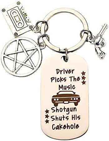 ShiQiao Spl Birthday Gifts for Her Him - Driver Picks the Music Shotgun Shuts His Cakehole Keychain for Friends Supernatural Fans Christmas Gifts