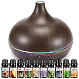 Aromatherapy Essential Oil Diffuser Set - 550ML Ultrasonic Humidifier for Large Rooms - Vaporizer and Aroma Diffuser for Home Bedroom