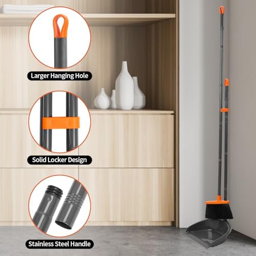 Long Handle Broom with Upright Standing Dustpan Combo for Office Home Kitchen Lobby Floor Cleaning