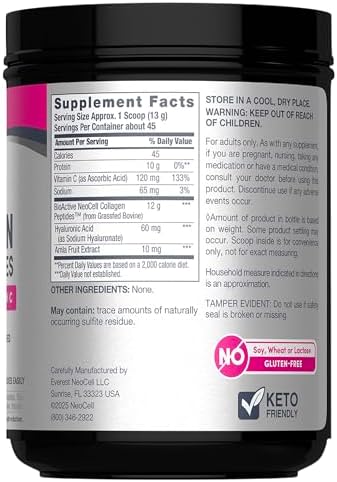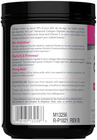 • COLÁGENO HIDROLIZADO: NeoCell utiliza un proceso de fabricación avanzado llamado hidrólisis que convierte las grandes moléculas de colágeno en pequeños péptidos que pueden volverse biodisponibles en el cuerpo