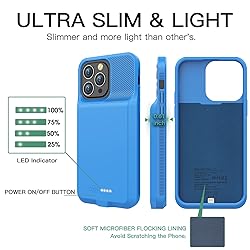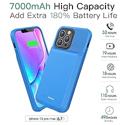 Battery Case for iPhone 13 Pro Max & 12 Pro Max, Real 7000mAh Ultra-Slim Battery Charging Case Rechargeable Anti-Fall Extended Battery for iPhone 13 Pro Max &12 Pro Max Battery Case(6.7") Blue
