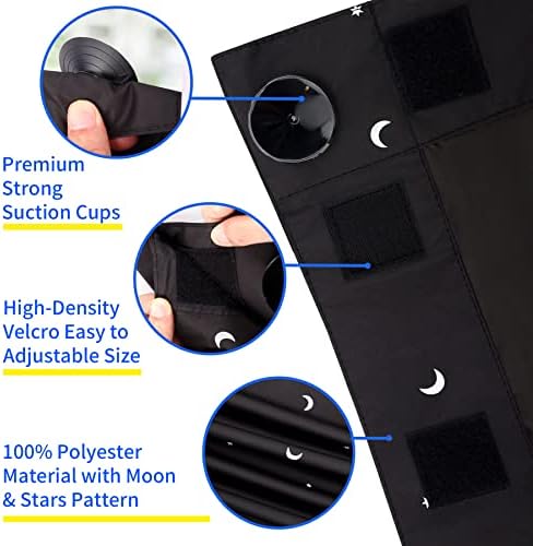 Cortinas Portátiles de Oscurecimiento, Goabroa, (78"x 50") Cortinas de Oscurecimiento Temporarias Ajustables con Ventosas, Persiana Temporal de Poliéster para Dormitorio, Guardería o Habitación Universitaria - Patrón de Luna y Estrellas
