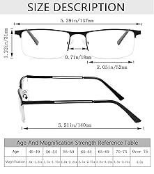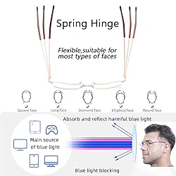 [Blue Light Blocking Reading Glasses for Men] : anti blue light and UV400 lenses can filter most of harmful blue light and UV400. great for office workers or anyone who has to look at screen all day,these glasses can block harmful blue light,reduce eye strain / tired,and protect your vision . [Designer Mens Readers] : our reading glasses are superbly crafted,sturdy metal frame durable and do not fade.we use high quality plastic temple and acrylic lenses.classic rectangular half frame design is perfect for men.metal frame reading glasses with spring hinge ensure comfortable fit without pinching face.stylish design let you look much younger. [4 Pack Man Metal Frame Readers] : great value 4 pack Metal Frame reading glasses with 4 different colors ,suitable for any occasions.leave one at home,at work,in your car's glove box,or in your purse,backpack,or carry all to have handy when and where you need them. [Professional & Clear]: Professional and accurate degree configuration with clear lenses.let you have a clear vision and a colorful world.Well blue light readers provide all day protection.No worry eye fatigue and headache,let you have a better sleep. [Worry-Free Shopping]: Customer satisfaction is our utmost priority,and we are committed to providing a worry-free shopping experience.If you have any questions or In case of any broken problem happens,please do not hesitate to contact until you are satisfied!