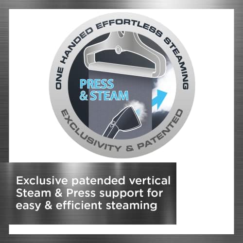 - EFFORTLESS PROFESSIONAL RESULTS: This Steamer for clothes allows you to experience flawless, one-handed steaming with our patented Steam & Press vertical support system, designed to provide the perfect resistance for unmatched steaming results.