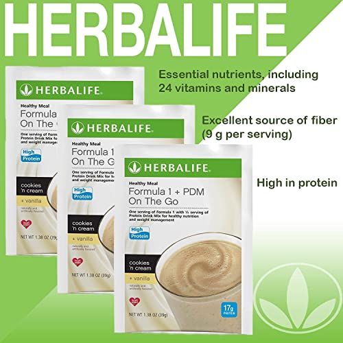 Herbalife HERBALIFE Trial Pack: Formula 1+PDM On The Go Protein for Energy and Nutrition, Sustain Satisfy Hunger, Excellent Source of Fiber, Increases Alertness with Total Control, Pack of 8
