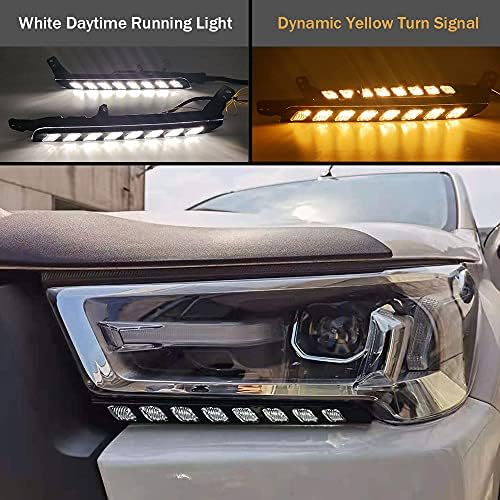 VGETTING - Luz diurna para Toyota Hilux Revo Rocco 2020 2021, repuesto de luz intermitente amarilla dinámica, barra de luz diurna LED Hilux con arnés de cableado