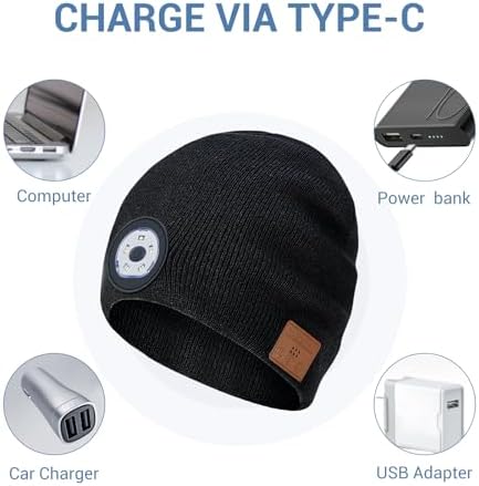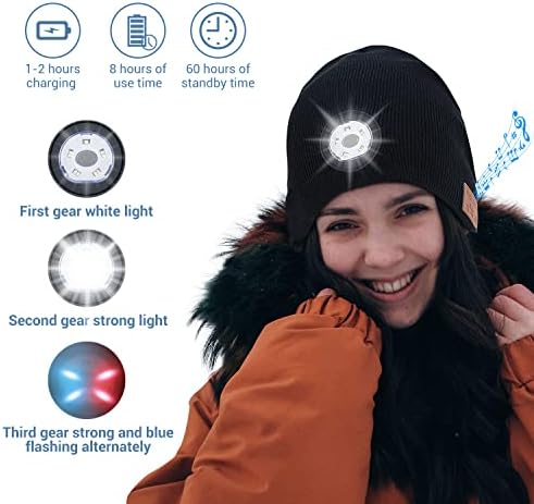 TOUCH TWO® Bluetooth Beanie with Light, Wireless Headphones with Stereo Sound Warm Knitted Music Cap Gifts for Men Women Teen