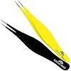 - Strong ultra precision surgical grade quality stainless steel is used to make the pointed tweezer ingrown hair remover. Professional’s staff extremely sharps the tips of long precision tweezers. Very Fine point tweezers crafts have all of their micro point head perfect alignment and Calibrated. Always use best professional tweezers kit for facial hair removal for women from the root. The powder-coated yellow and black color is used to set up the needle nose tweezer thin.