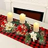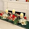 Joliyoou Christmas Tabletop Centerpieces, 17.5" L Christmas Poinsettia Candle Holder with 3 Battery Operated Light Up Candle Lights, Metal Candelabrum for Xmas Holiday Table Mantel Decoration