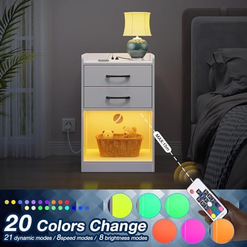 - 20 Colors RGB LED Lights: The color of the light strip is variable according to needs and scenes. The bedside nightstand comes with beautiful multi-function RGB LED light. The LED light will make your home looks more modern and fashionable. The light strip is controlled by a remote control (20 dynamic colors, 21 dynamic modes, 8 levels of dynamic speed, 8 levels of brightness adjustment)